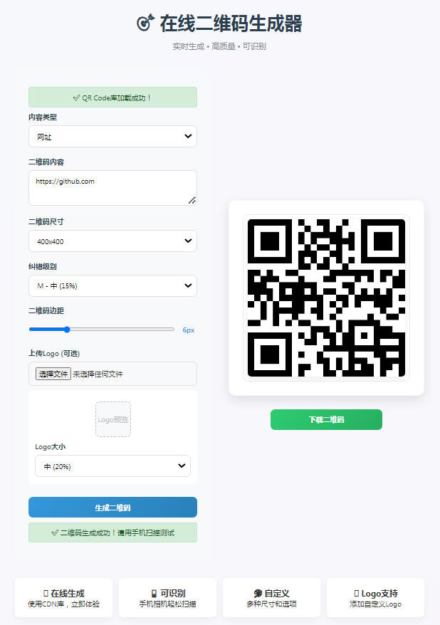 通过Deepseek编写的免费版在线二维码生成工具,下载后可以支持离线运行,操作简单,使用方便,