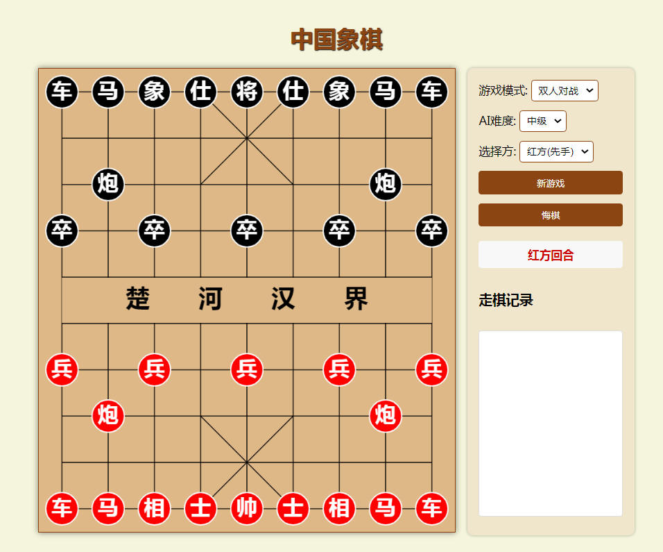 AI应用 1、网页版中国象棋 这是通过Deepseek无代码编写的中国象棋网页版游戏,支持人机对战、双人对战,有一点挑战性,直接点击就可以开战,下载后可以自行修改内容。 2、五子棋 这是通过豆包无代码生成的一个网页版围棋五子棋游戏,直接点击就可以进行游戏,人机对战,初级、中级、高级、专家四个级别,高一点级别的挑战性比较大,不留神就输给计算机了,最后还有游戏统计,胜负局数。 通过豆包编写的一个网页版的应用程序,无代码编程,谁都可以做,只要表达清楚需求,自己就可以生成这些应用程序,直接点击就可以正常打开使用了,但是听上去效果不是太理想,生成的简谱和实际的差距较大,这个应用需求涉及的分类比较多,不是太好设计,如果你生成了有好的应用,也可以发给我,替代这个版本。 通过Deepseek 编写的可以本地运行的万年历,经过很多大模型的版本迭代,至少有50次的需求迭代,包括豆包、千问3、GPT等最后通过这方法实现了本地万年历的网页版。