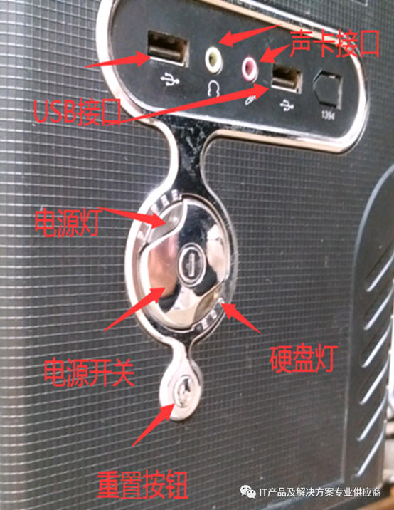 3、电源、硬盘指示灯:电脑工作时,电源灯一直亮,硬盘进行数据读写时,指示灯会闪烁,