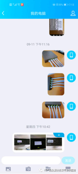 ,在手机的QQ中找到我的电脑,直接可以拍照或者发送文件到电脑上,过程和微信是一样的。