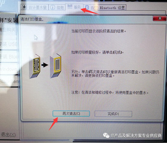 通过打印机自动的工具,进行打印头的清洗工作,首先是清洁,其次是中级清洁,再次是高级清洁,如果还是无法正常打印输出,就可以点击再次清洁,清洁的过程中会消耗墨盒中的墨水。