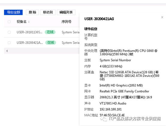 仅仅支持能接入互联网的计算机,能够查看电脑配置、安全状态、应用程序、上网流量,基本上能满足日常企业网络管理需要的管理项目,仪表盘显示直观、高效。