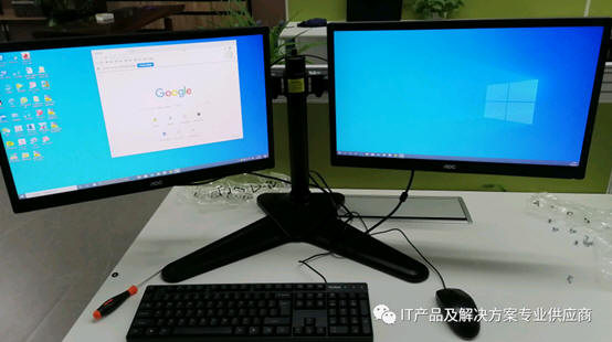集成显卡的连接方式,要同时连接两条视频线,到不同的显示器上,显示器的屏幕可以是两个不同大小的屏幕,也可以是相同尺寸的屏幕,可以配接专业的多屏支架。