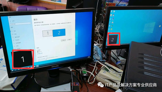 标识为1的在最左侧,后续依次增大显示2显示3,这样操作是,光标可以通过屏幕1的右侧出去到屏幕2上,从屏幕2的左侧出去到屏幕1上,屏幕1左侧的光标是出不去的,屏幕2的右侧光标也是出不去的,如果有第三个屏幕的话,才可以出去。但是如果屏幕1和2的顺序反了,你操作的时候,就会非常别扭,本来你是想从右往左移动鼠标的,但是你必须要从屏幕的右侧出去,从左侧屏幕的左边进入屏幕,不顺手了,所以如果顺序接反了,需要重新连接视频线。