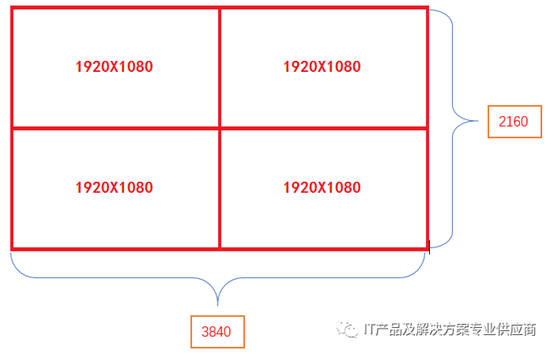 4个高分的屏就组成了一个4K屏,分辨率为3840X2160像素