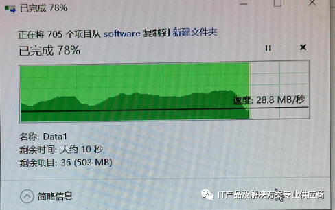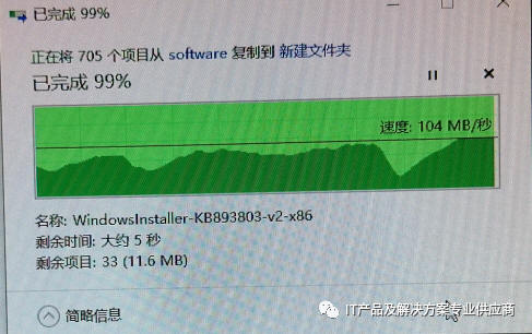 大部分时间的传输速率在70-100MB/秒,这就非常的快了。