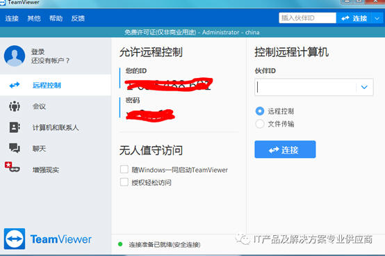 通过teamviewer进行远程协助,这个工具比较好一点,网上大家都在用网络的时候通过这个teamviewer进行远程的时候,速度也还是可以接受的,这一点比QQ效果好一点,但是如果长久使用,需要收费,同时需要客户安装客户端软件才可以,现在每台电脑上基本都安装QQ了这个软件。这是一点不方便的地方,好在安装客户端软件也不麻烦,下载安装就可以了。网络不太好的时候我们也通过这个远程工具进行实践培训课程的讲解。