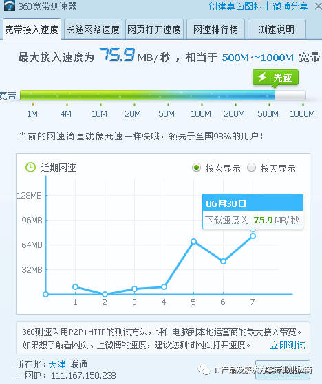 这些仅仅是参考,相对360的接近实际的宽带网速,我的实际网速是500M,从这里看到本地电脑的网络连接速度: