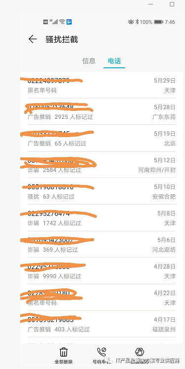做网络营销,网站上都需要公布联系方式,电话号码、邮箱,希望看到人需要联系时能及时联系上,做电话营销的人,也就很容地获得您的电话号码,直接打电话给您了,推销保健品的、贷款的、游戏的、刷单的、卖房子的、装修的、代孕的、冒充公检法的等,您能想到的都有,您没有想到的也有。为避免第二次打扰,我们通常的做法都是直接拉黑或标记广告号码,智能手机会自动拦截这二次呼入的号码了。