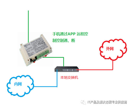 把该设备安装在内网之间,或者添加一个交换机,链接一个无线远程控制开关,通过手机控制交换机电源的开、关,当我需要获得内网数据时,通过手机的APP打开开关,交换机接通,内外网联通,APP关闭开关时,交换机断开,内外网物理隔离,用最简单的解决方案,实现了复杂的应用需求。