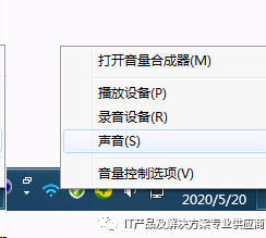 鼠标右键点击电脑屏幕右下角的小喇叭,弹出菜单中选中声音,再选录制。