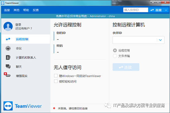 3、注册teamviewer,在单位电脑的办公室上安装Teamviewer,可以远程登录控制自己办公室的电脑;速度比较快,也比较稳定,但是免费版有使用限制;