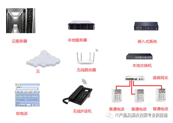 云服务器、嵌入式IPPBX、语音网关、IP话机、软电话、克隆模块、打线钳、测线器、寻线仪、PBX集团电话、普通电话机、交换机、路由器、摄像头、电脑。