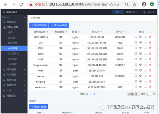 7、同一个IP地址过来的模拟语音网关可以建立多条呼入中继,呼出中继,呼入中继可以更具绑定的不同号码,呼叫到不同的目的地,外呼可以根据选择的不同的外呼字头,指定外呼的模拟中继线。如果有4个FXO可以实现4个不同的外呼中继。