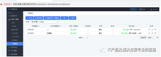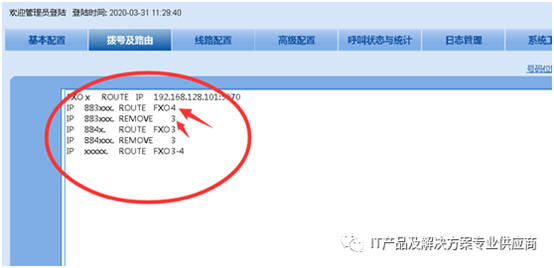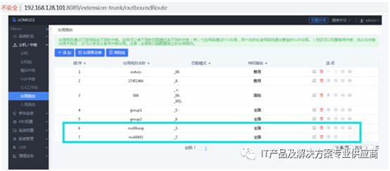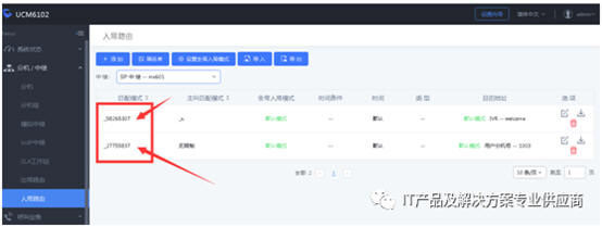 6、同一个IP地址的语音网关可以设置多个呼入路由,需要主叫匹配,每个FXO口的呼入可以指向不同的目的地