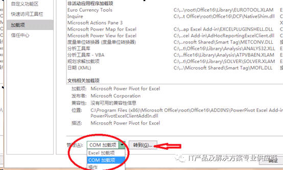 文件-选项-加载项-管理-选择COM 加载项然后点击转到