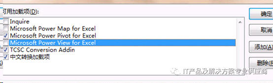 显示如下界面,在Power Pivot for Excel 前面打上对勾,然后再点击确定,看看是否能成功显示出来正常的菜单, 如果打对勾以后,Excel