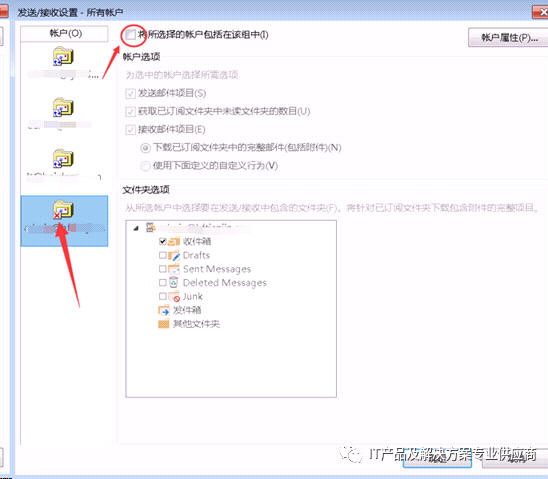 选择需要设置为不同步的邮箱帐号,然后取消顶上的对勾,左侧导航栏中的邮箱帐号变为红X ,点击确定,就设置好了,再打开OUTLOOK