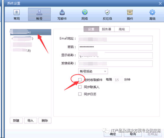 选中需要设置为不 自动收发的邮箱帐号,再把定时收取邮件的对勾取消掉就可以了