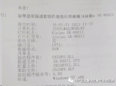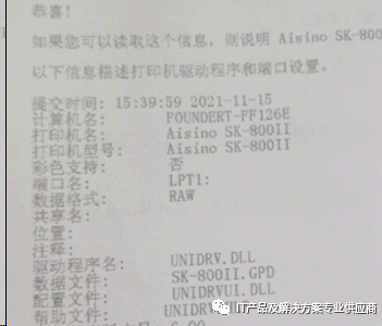 从这里判断,应该不是打印机驱动程序的问题,可能是打印电缆松动造成的,通过重新加固一下该台打印机和打印机共享器的连接线,再打印测试页时,就显示正常了。