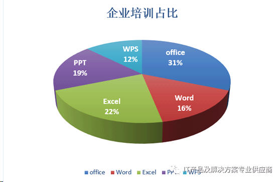 培训统计参考,可以根据企业具体需求做出选择,OFFICE 和WPS为 全包括,其余为单项比例。