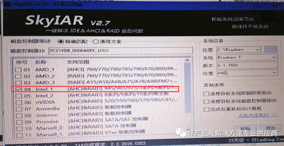 3、使用U盘启动盘,启动后运行SKYIAR,自动会识别需要安装的驱动程序。
