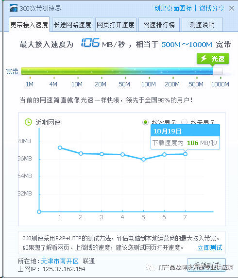 接入速度仅仅是这我们用户端到运营商提供端的之间的带宽,如果再去其他的平台、网站,网速就会大打折扣了。