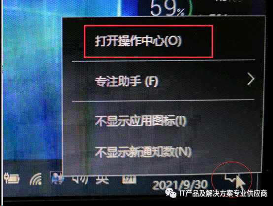 这个在Windows10的版本21H1中操作成功,试一下您的电脑是否可以复现操作中心图标在电脑的右下角。