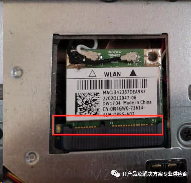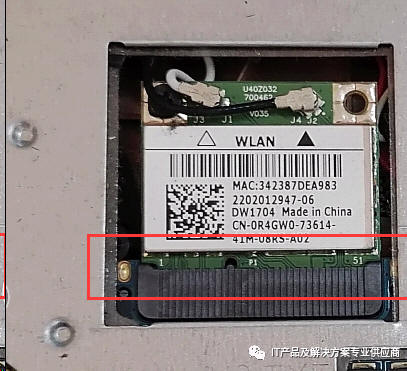找到无线网卡一看,可能是有些脱落,导致接触不好,重新固定好再试试看,固定好了之后就是这个效果的了: