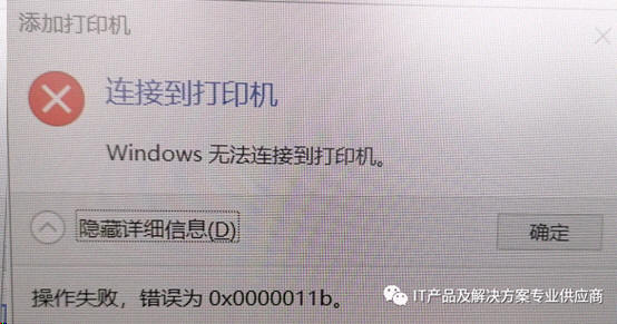 WINDOWS 10 局域网共享打印机无法打印,打印时跳出信息0x0000011b无法正常打印输出,用户反映说是操作系统自动更新以后就成为这样的,原先使用一直正常。