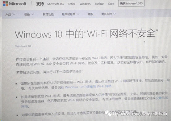 说此WLAN 网络使用将逐步淘汰的较旧的安全标准,建议连接到其他的网络