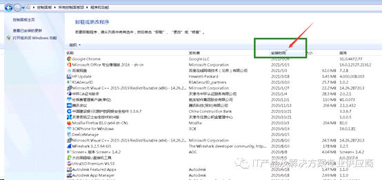 打开控制面板的程序与功能,点击安装时间:就会显示所有应用程序的安装日期,点击安装时间这标题后,就会按安装时间排序,这里面所有的最新,就是最近日期安装的应用程序,不是你自己确认安装过的,应用程序,一律卸载,早先安装过的应用程序卸载时需要小心,卸载前需要确认是否可以卸载,可能卸载完了导致系统有问题。