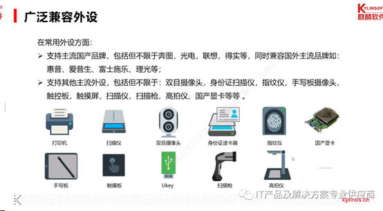 2、您一定担心更换系统后,我的外设是否都能正常工作呢?打印机、扫描仪、高拍仪、摄像头、手写板等,目前市面上主流的打印机、扫描仪等都支持,如果比较特殊的可以找厂家或者麒麟操作系统的生态适配部解决,通常15天左右可以解决。