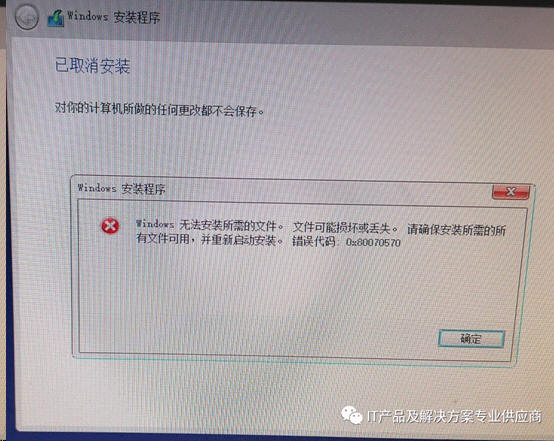 一台电脑使用最新正版WINDOWS 10制作的U盘安装,前面启动分区都正常,等到复制文件的时候,到1%、2%、3%的时候,总是出现很多错误代码: 错误代码8007025D 、80070570等
