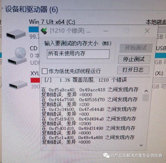WINPE 正常启动是没有问题的,WINPE 启动后,使用内存测试工具测试显示如下错误: