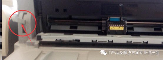 打印机的这个位置有一个打印头的调整杆,可以控制打印头的位置,保证打印效果清晰: