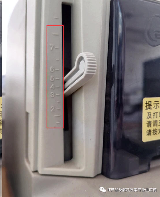 因为这个色带更换了没有多长时间,所以怀疑是操作时不小心碰到了这个调整杆,导致打印不清楚,所以调整打印头的位置到最低,打印效果更差,基本都看不清楚了。