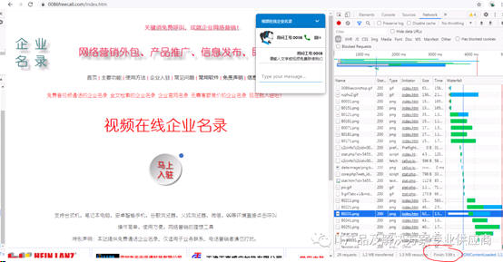 这里介绍使用谷歌浏览器解决问题的方法,首先打开谷歌浏览器,还没有输入网址的时候,按快捷键F12,显示一个界面,选择network 选项,然后输入需要诊断的网站,比如视频在线企业名录网站:https://www.0086freecall.com