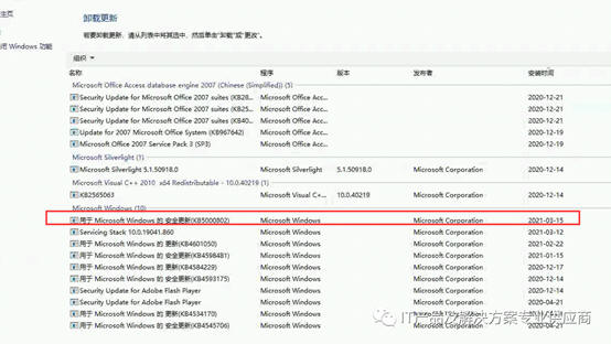 通过控制面板、程序和功能,已安装更新,发现2021年3月15日有一个更新 KB5000802 ,应该就是这个补丁造成的,我们先卸载后再试一下。
