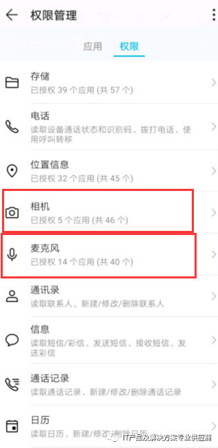 关闭没有必要使用麦克风和相机的APP应用程序,操作方法是安卓手机--设置--应用--权限管理--权限--相机或者麦克风: