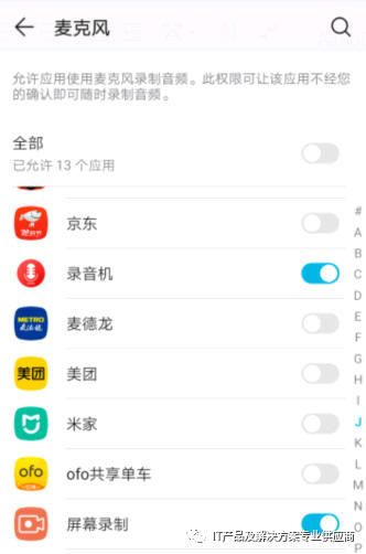 这个选项可以让应用程序随时使用麦克风,不需要再次确认,所以要关掉;没有用的一定要关掉。
