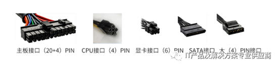电源各种接口形式,24针电源接口可以拆分为20+4,直接可以连接在20针的老式主板上使用。