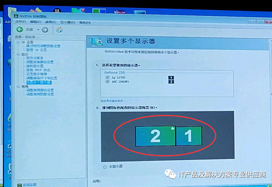 一个办法,我们把两个显示器交换一下位置,就可以实现了,通常都需要设置左边的显示器为主显示器,右边的显示器为扩展显示器。