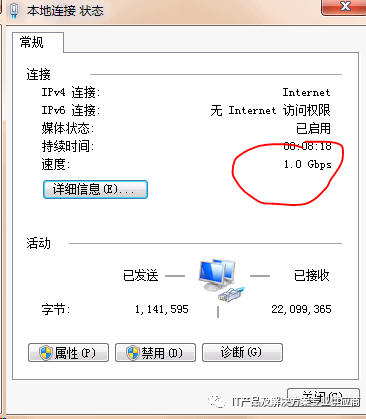 关机重新启动后,网速依然正常,虽然显示的连接速率不正常,但是工作已经正常了,运行了3天,再也没有发生丢包,网速慢的现象,打开网站速度一直很快了。