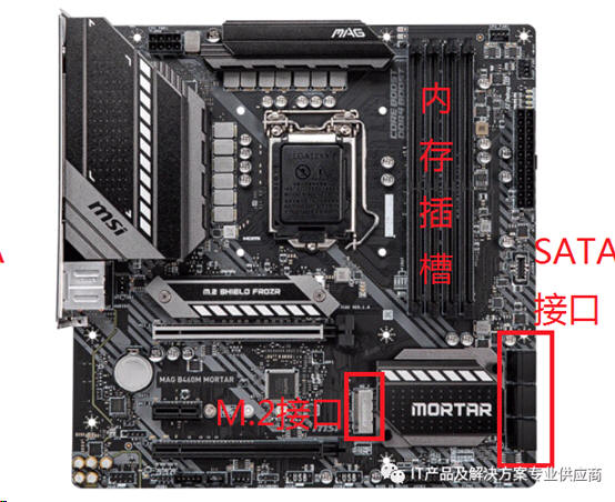 主板上SATA的接口都有,但是如果希望购买M.2的硬盘,需要主板上有接口才可以配套使用,M.2NVMe的速度被SATA的要快很多。类似这样的接口。