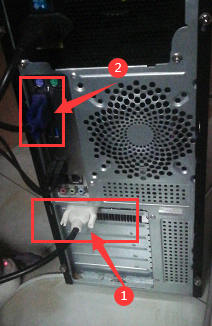 如果有独立显卡,首选的显示器数据线要接在独立显示卡上,就是上图①的位置,上图②的位置是集成显卡的接口,如果将①②同时接在一台显示器上使用。